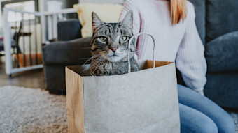 Feed your cat a light meal at least two hours before departure1 to avoid any travel-related discomfort. Always offer water, but remember, too much food can lead to an uncomfortable journey for your pet.